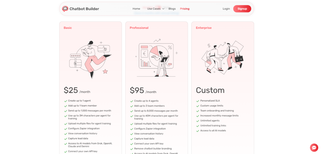 - Professional: $95/month (up to 8,000 conversations)